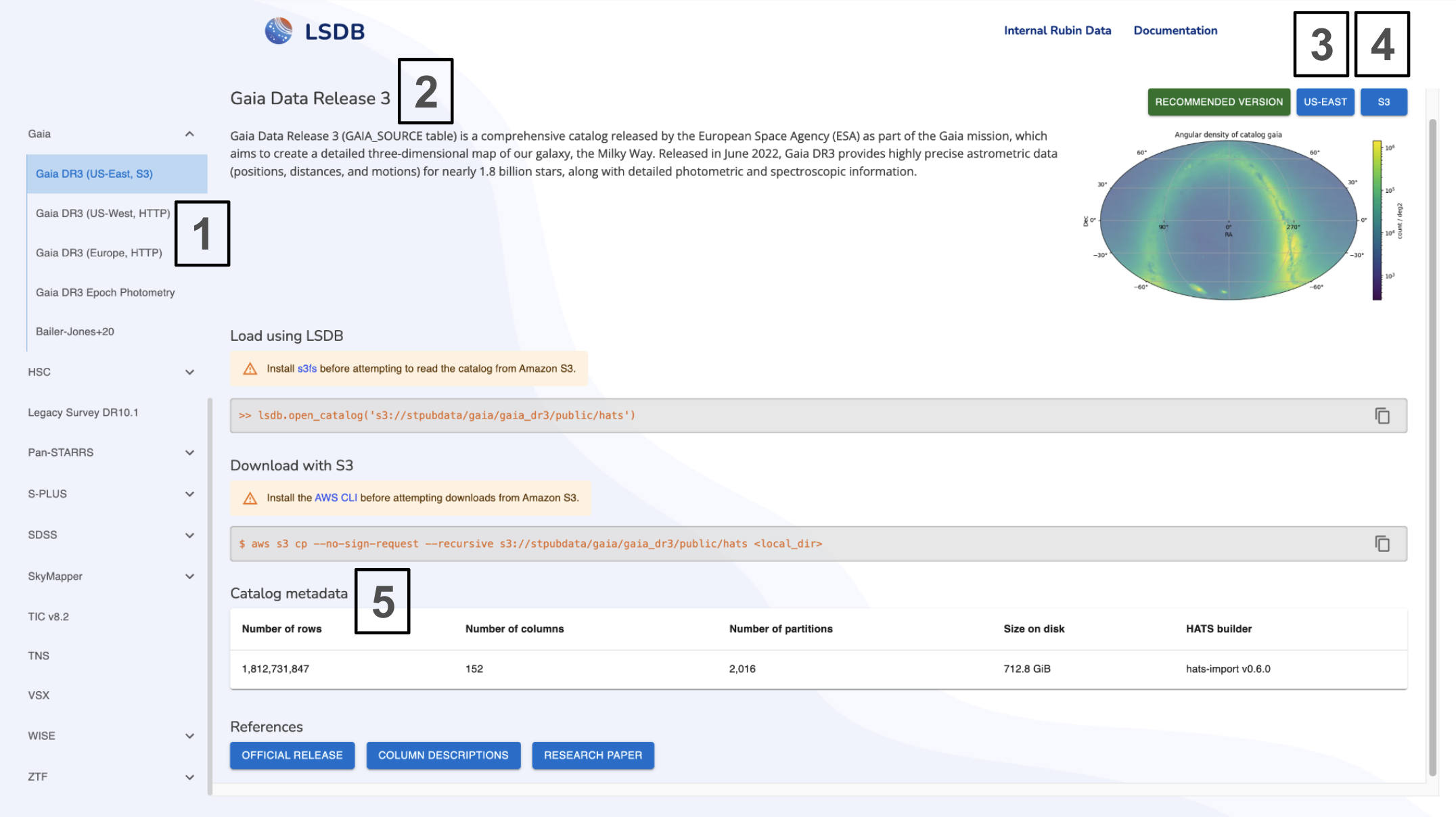 This page walks through the data.lsdb.io site and explains how the information on that page maps to where catalogs live and how you can access them.